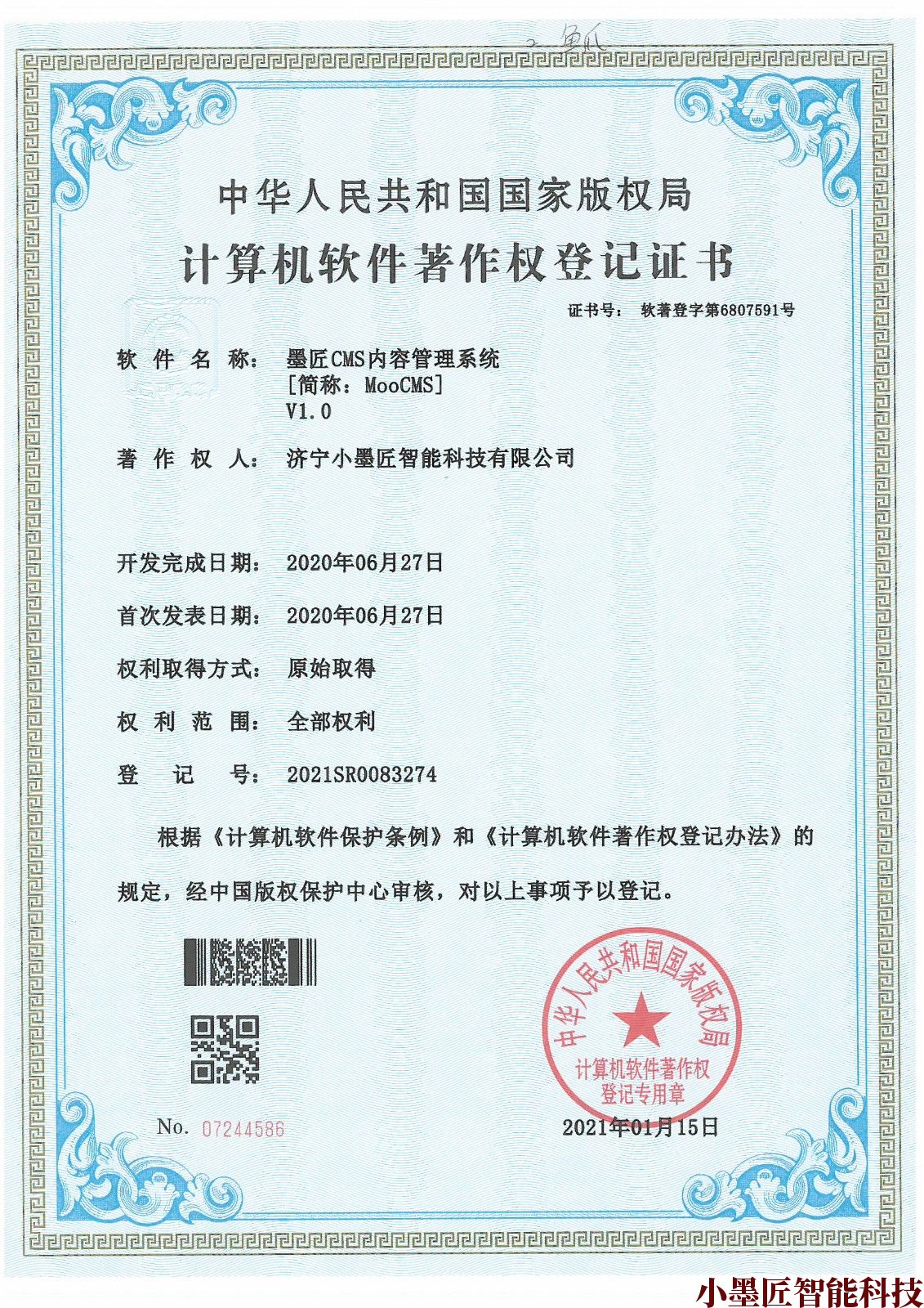 濟寧墨匠軟件著作權證書
